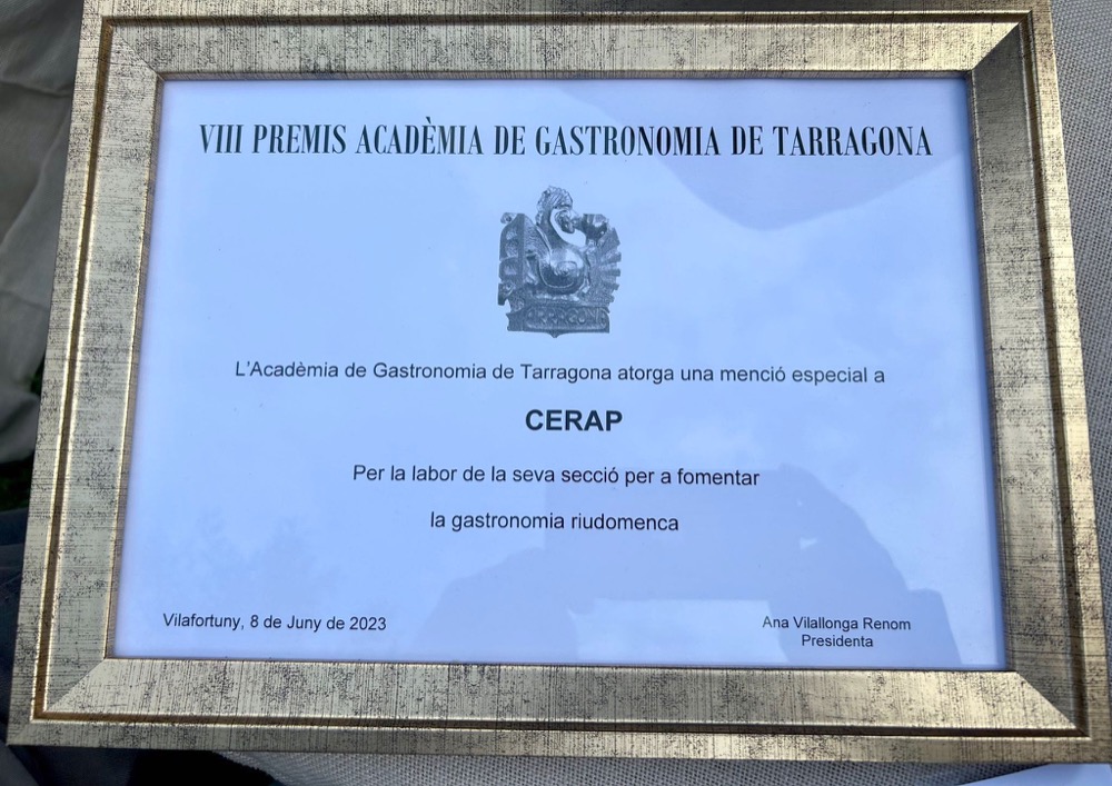 – Secció de gastronomia del Centre d’Estudis Riudomencs Arnau de Palomar. Va recollir el premi el seu responsable, Ramon Margalef.