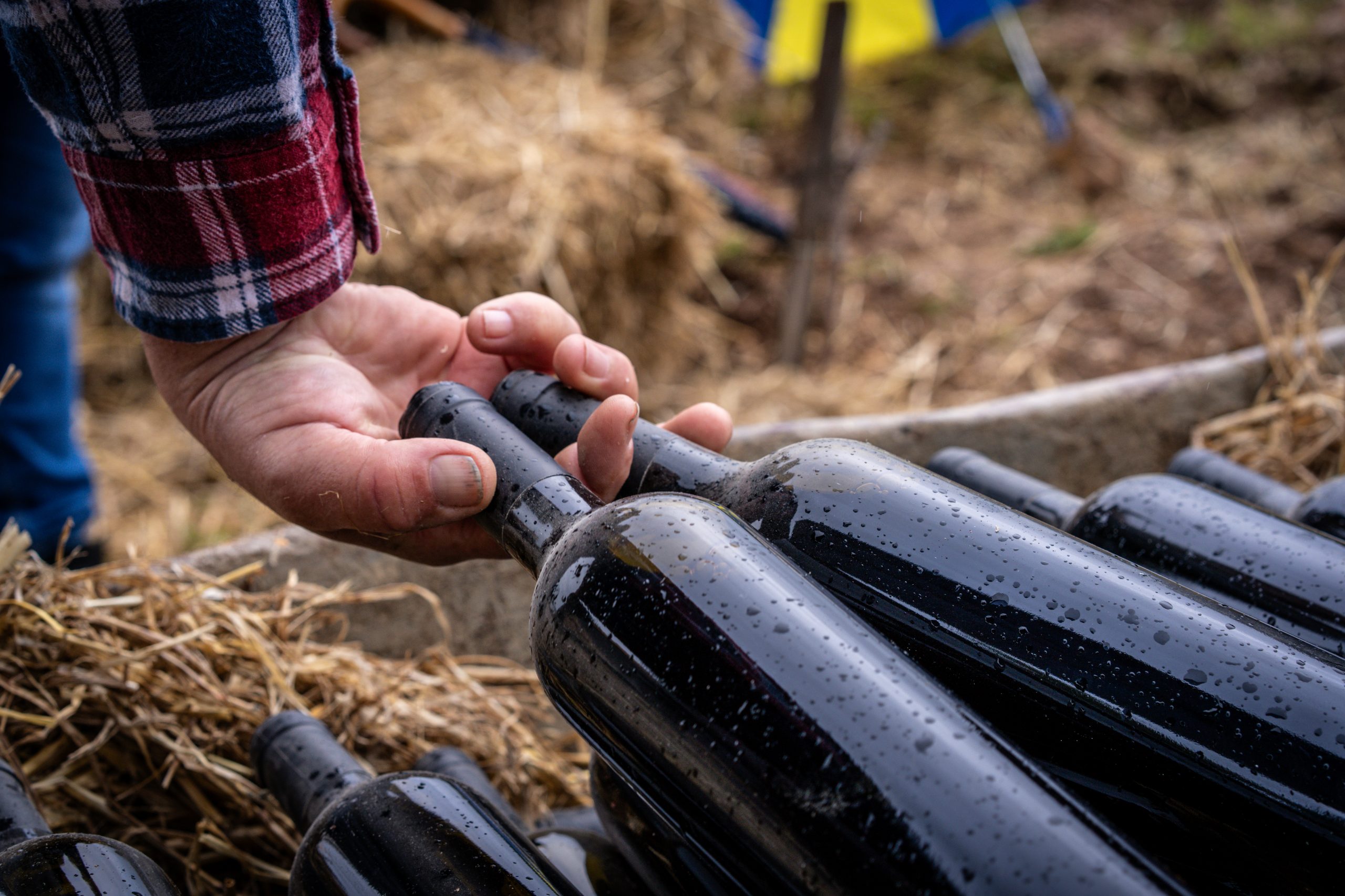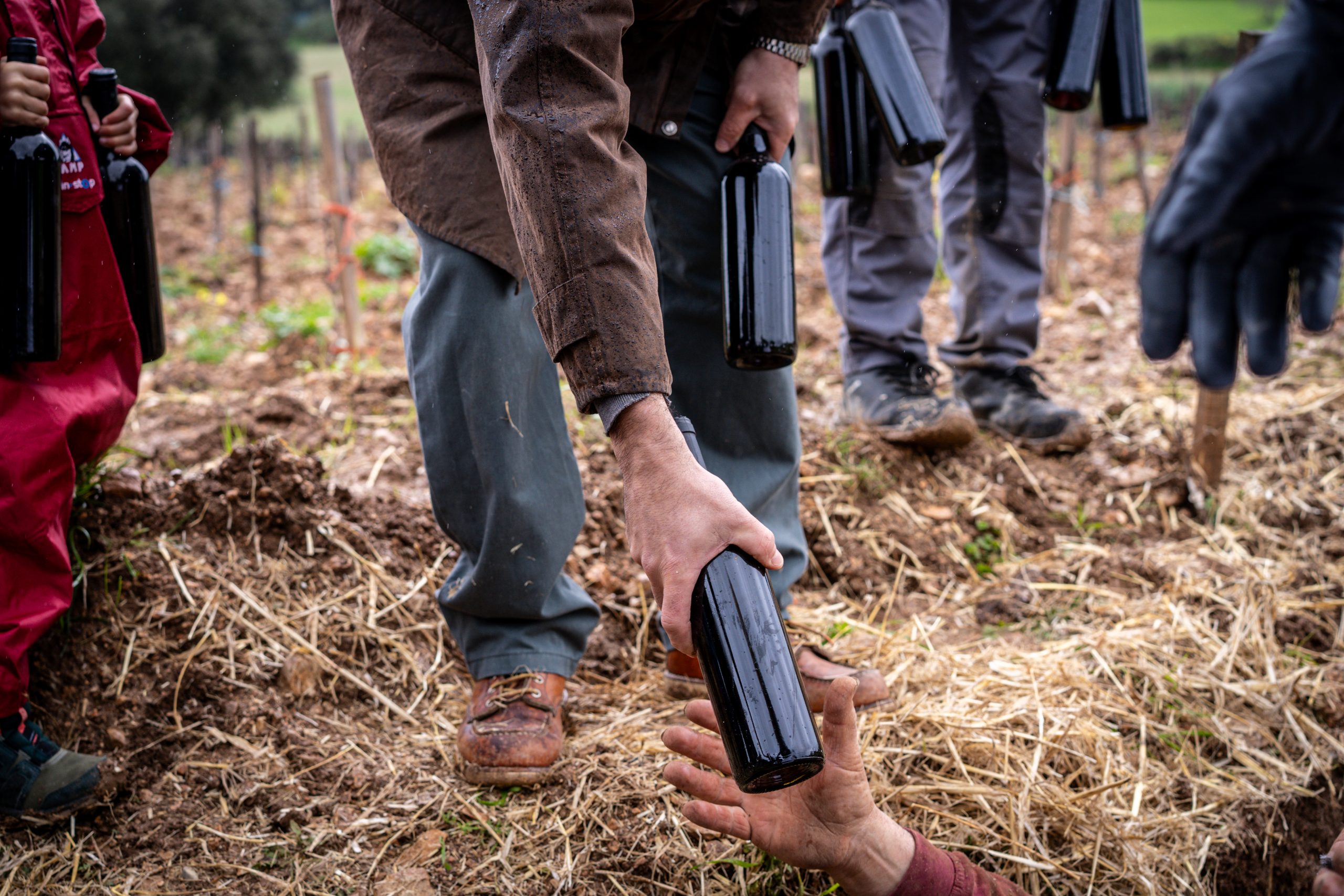 Toni Sureda, col·locant les ampolles dins la sèquia ubicada en una de les vinyes de Son Vell / Foto:Tarek Serraj