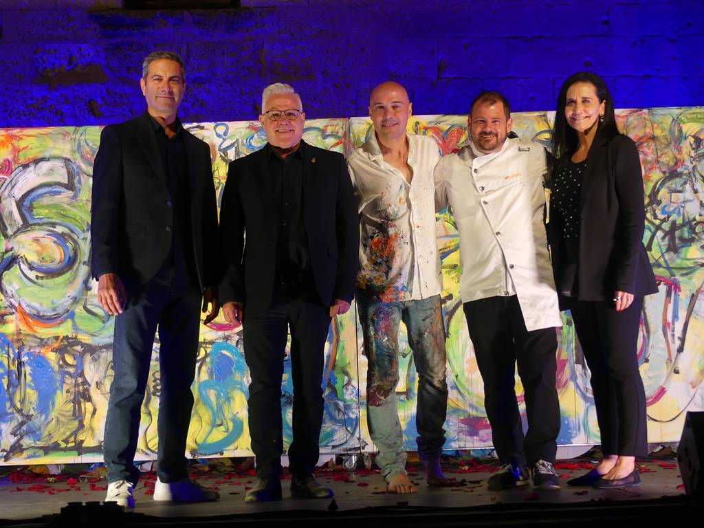 El punt àlgid ha arribat amb la proposta “A dues mans”, que ha unit el talent pictòric de Callau amb el del xef Pep Moreno, Estrella Michelin i recentment distingit a Milà als The Best Chef Awards 2025. Callau ha pintat un plat creat per Moreno, qui alhora ha elaborat en directe unes postres inspirades en el perfume de Salou, en una fusió magistral entre cuina i pintura que ha meravellat els assistents.